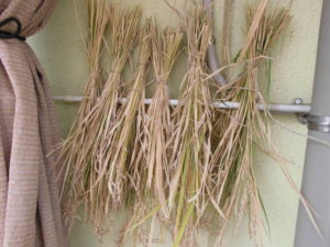 お部屋の前に稲を干して、食べごろを待ちます🎵