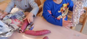 前日の日に、さつまいもにアルミホイルをまいて、準備をしました!